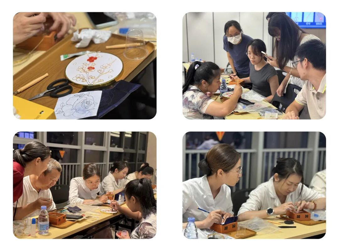 学员们亲手体验掐丝珐琅与点翠这两种非遗技艺,深入体会其独特的工艺流程与艺术魅力。时光仿佛在这里静止,唯有那份古典的优雅让人陶醉。