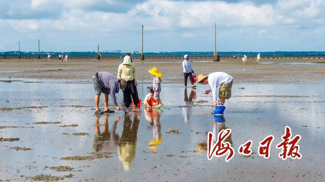 6月29日,在海口北港岛,市民在滩涂上体验赶海项目。海口市融媒体中心记者 杨鹤 摄