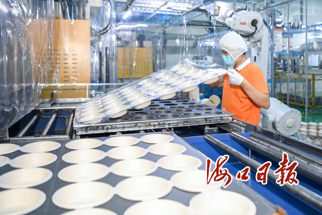 “禁塑”工作的深入推进,不仅改变了市民的生活方式,更催生出绿色产业新生态。当天下午,记者来到海口国家高新区,在海口裕同环保科技有限公司的生物降解制品生产线上,一批批“新鲜出炉”的可降解产品正在进行最后的消毒杀菌工序。企业负责人花杰指着一摞摞一次性可降解餐盒告诉记者,这些产品的原料是从废弃的甘蔗浆中提取的,在工业堆肥条件下180天内就能完全降解,目前年产能已达2万吨。
