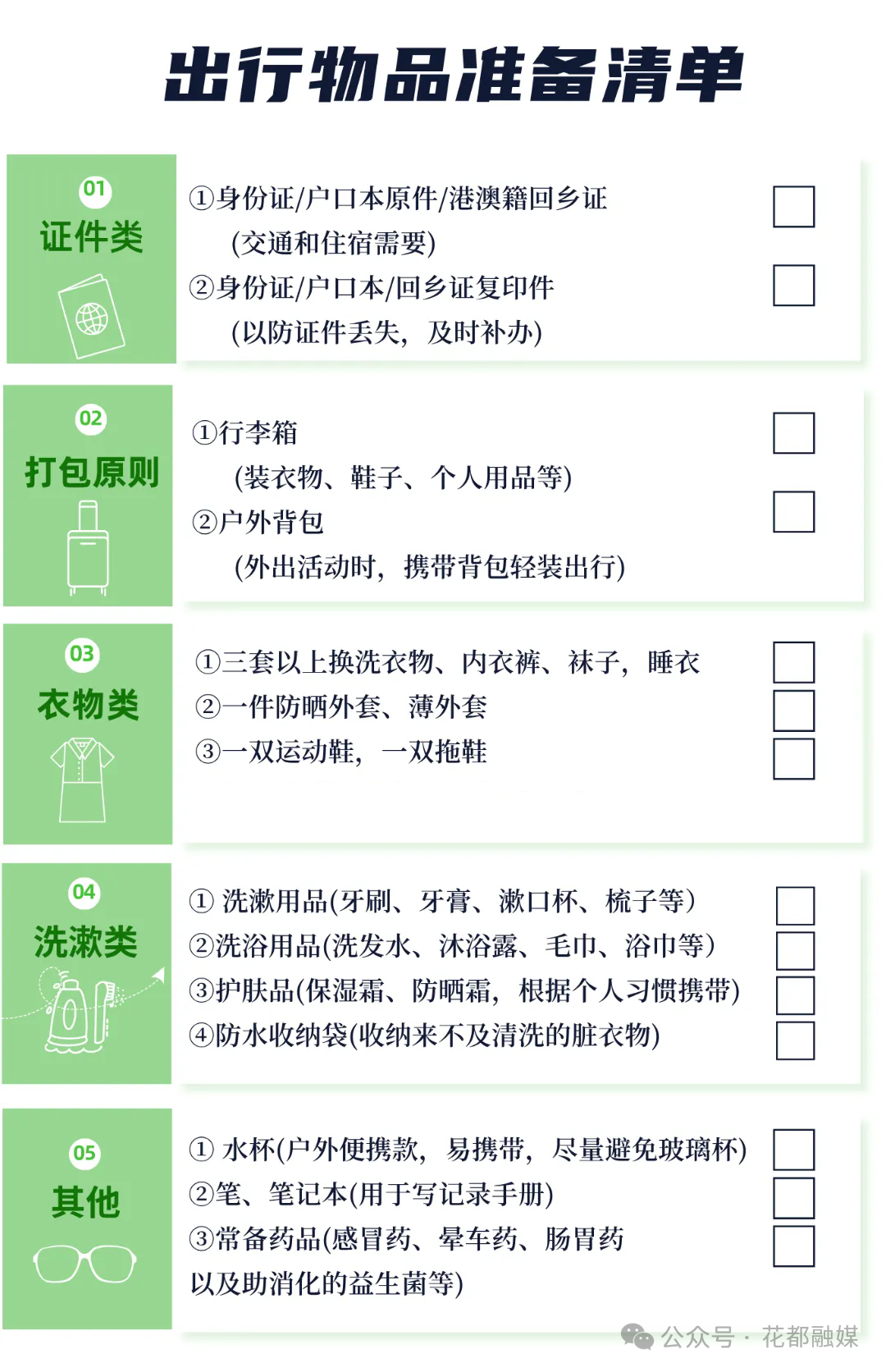 为了培养孩子的独立能力,我们建议家长孩子自己准备物品,请孩子自行填写携带清单,以防止丢失物品。重点标注给孩子的每一件物品做标记;