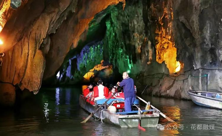 少年探秘英德仙桥地下河,乘船看神奇的溶洞奇观,感受恒温18度的亚洲最长的地下河。