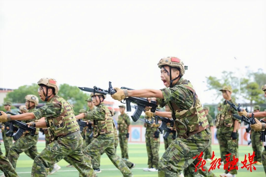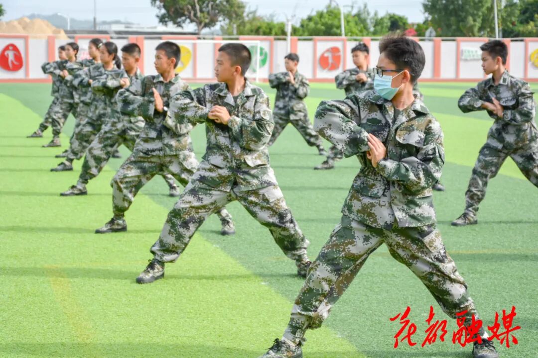 烈日下,国防班学生身着迷彩服,步伐铿锵地演练军体拳,匕首操的呐喊声震彻校园。这一幕,已成为花都区花东镇国防教育的标志性场景。