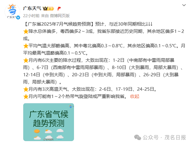 广东7月气候趋势预测