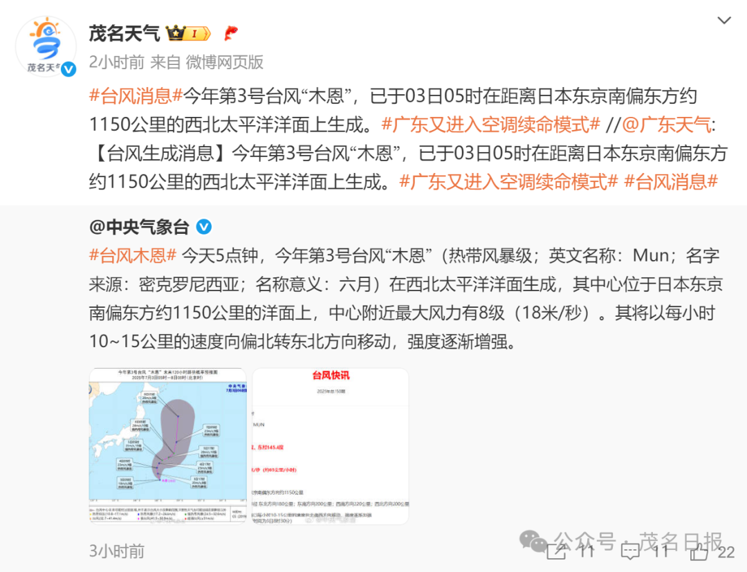 3号台风“木恩”今天生成