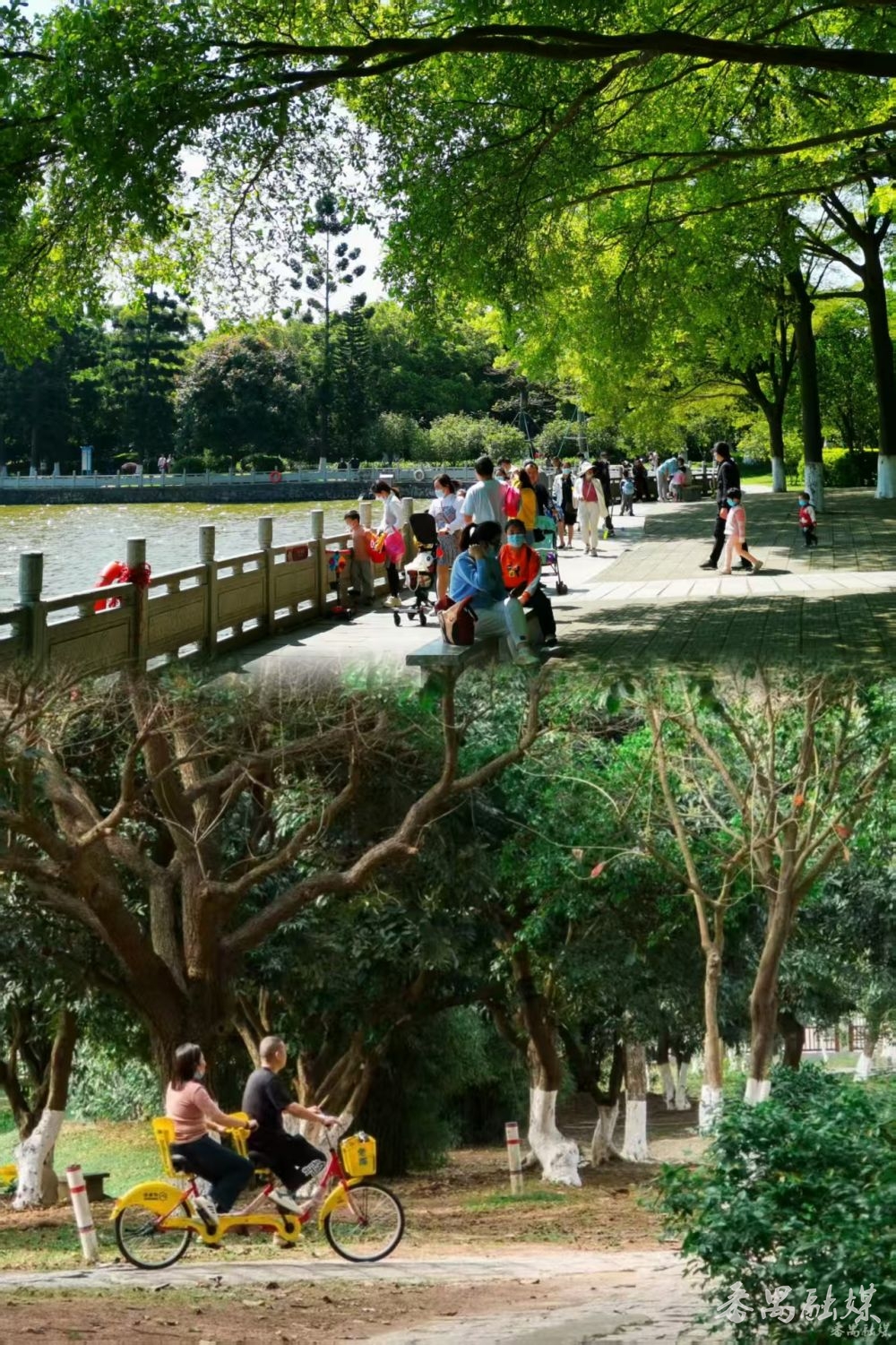 大夫山森林公园是生态型自然风景区,总面积约 9000 亩 ,这里湖光山色,绿树成荫,是休闲放松的绝佳去处。你可以租一辆自行车,沿着蜿蜒的绿道骑行,欣赏沿途的美景。道路两旁,高大的树木遮天蔽日,阳光透过树叶的缝隙洒下,形成一片片光斑。微风拂过,带来阵阵草木的清香,让人心旷神怡。