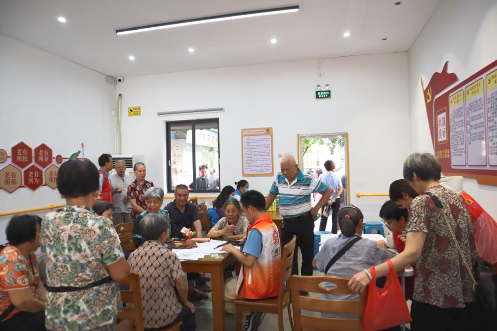 揭牌仪式当天,服务站内人头攒动,吸引百余名老人参观,咨询各项服务内容。其中,供餐服务成为关注焦点,工作人员介绍长者饭堂菜品设置、订餐流程及收费标准,180名老人现场填写订餐表。
