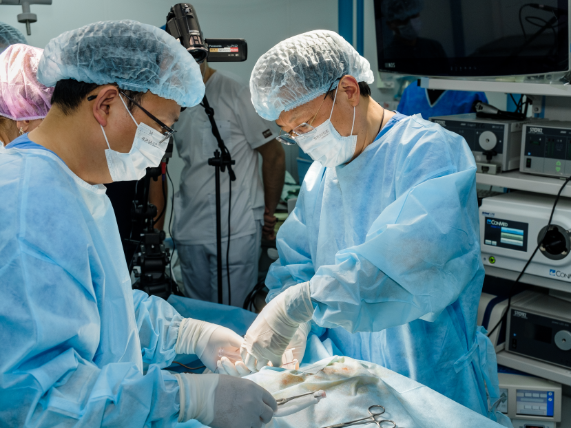 期间,我院肛肠外科团队还在莫斯科国立谢东诺夫第一医科大学附属医院进行一例混合痔患者的手术演示。传统观念中,痔手术常被视为“小”手术,但其对解剖细节的精通、精准操作技巧以及针对患者具体情况选择合适术式的要求,恰恰是衡量外科医生临床功底的重要方面。手术中,任东林教授创新性采用弹力线套扎术处理内痔,并同期行外痔皮赘切除术。该术式有效保留了肛门外形及功能,在达到治疗目的的同时兼顾了肛门外观、功能保护及患者舒适度。