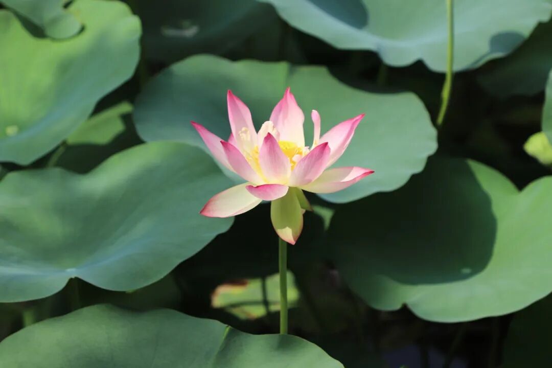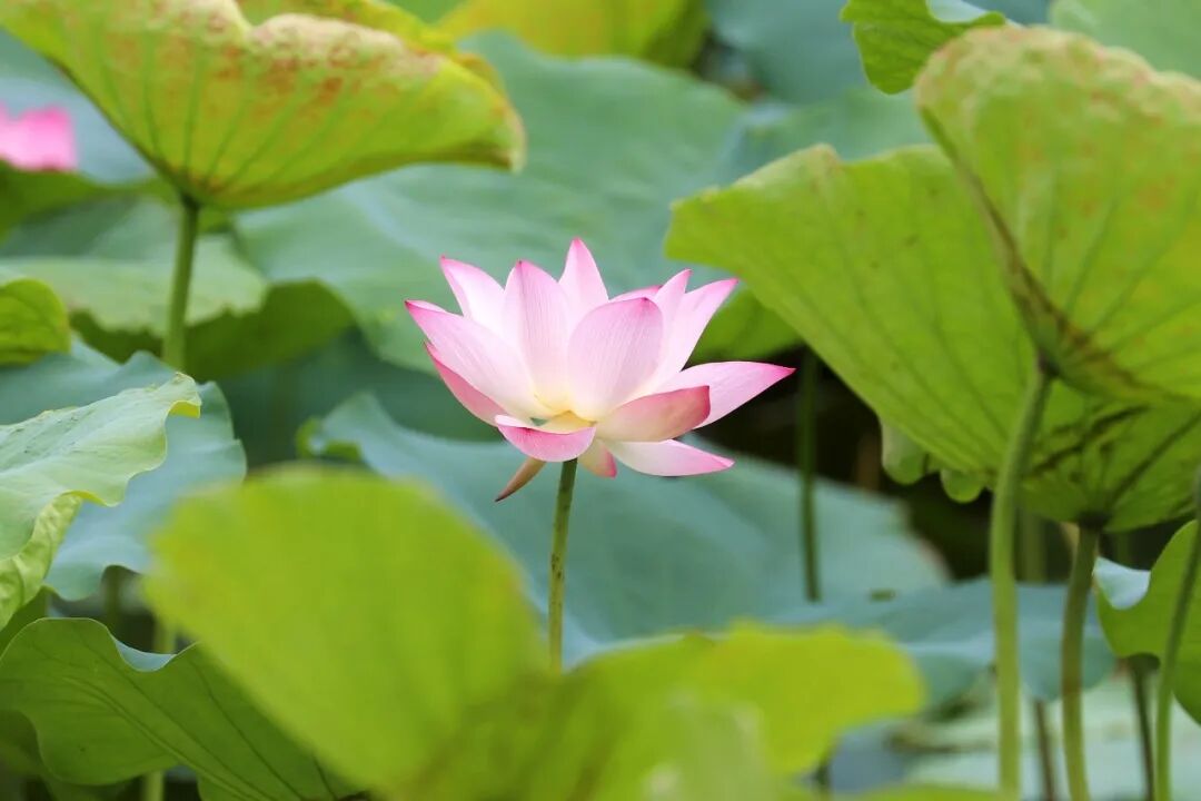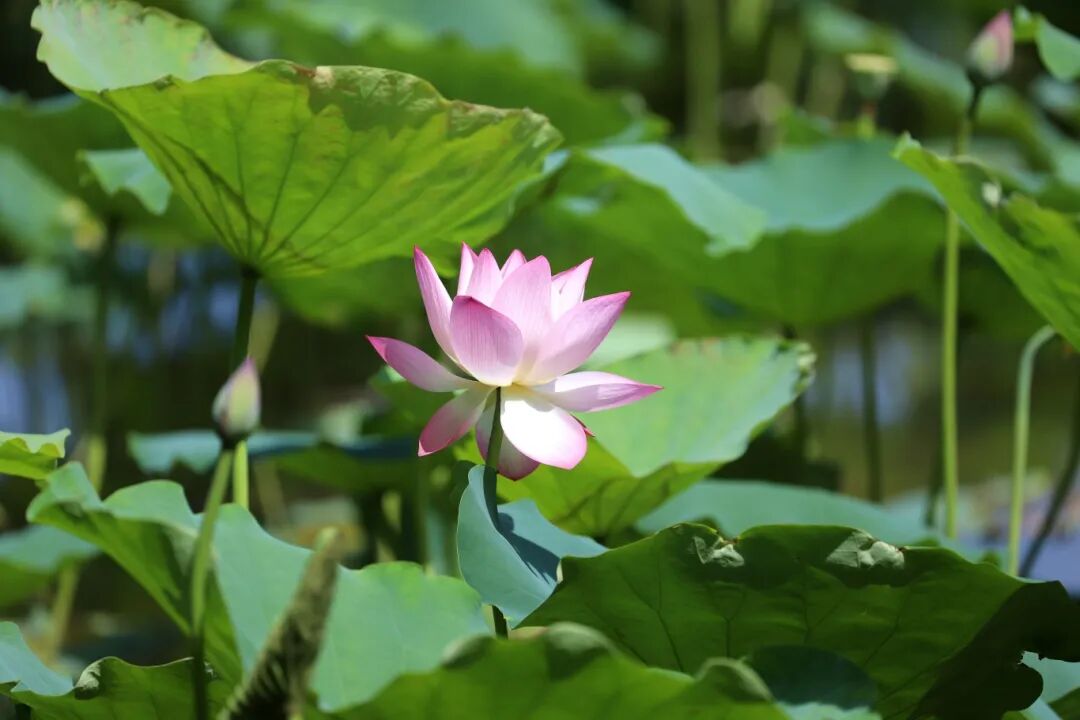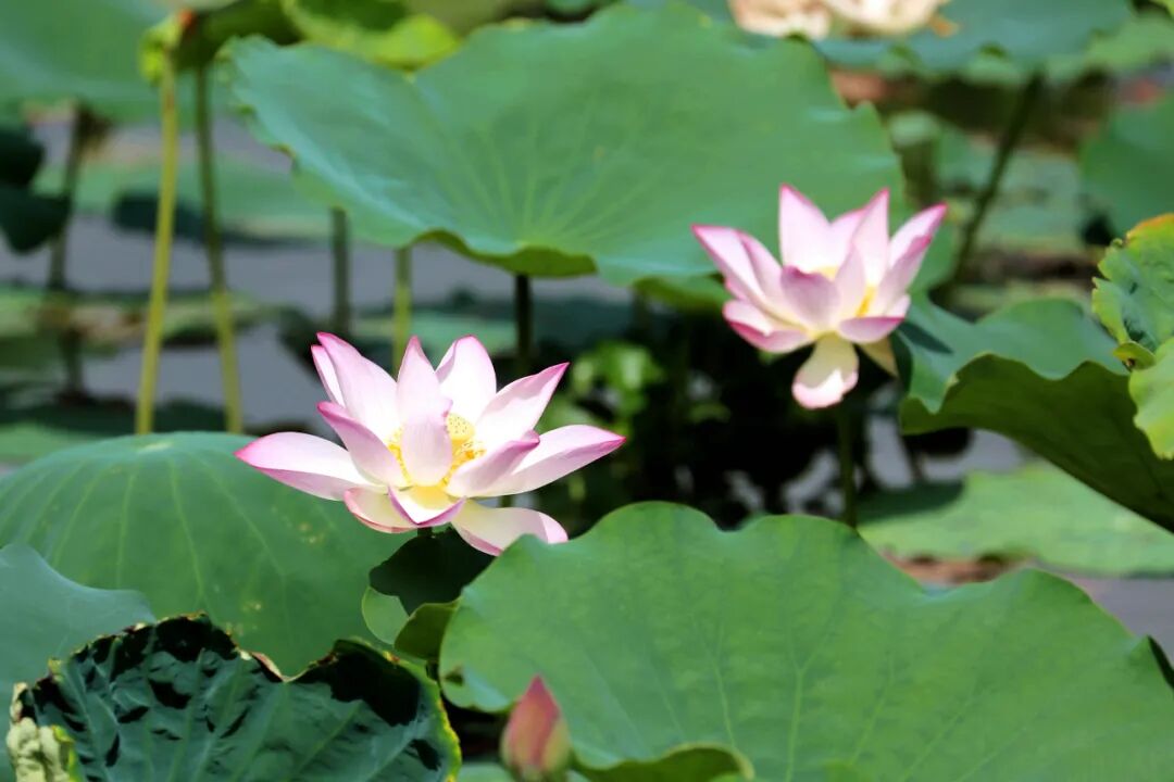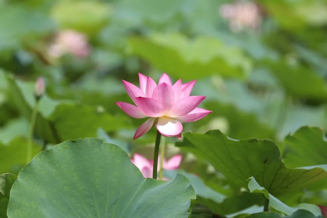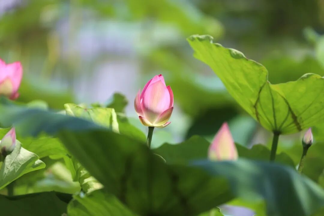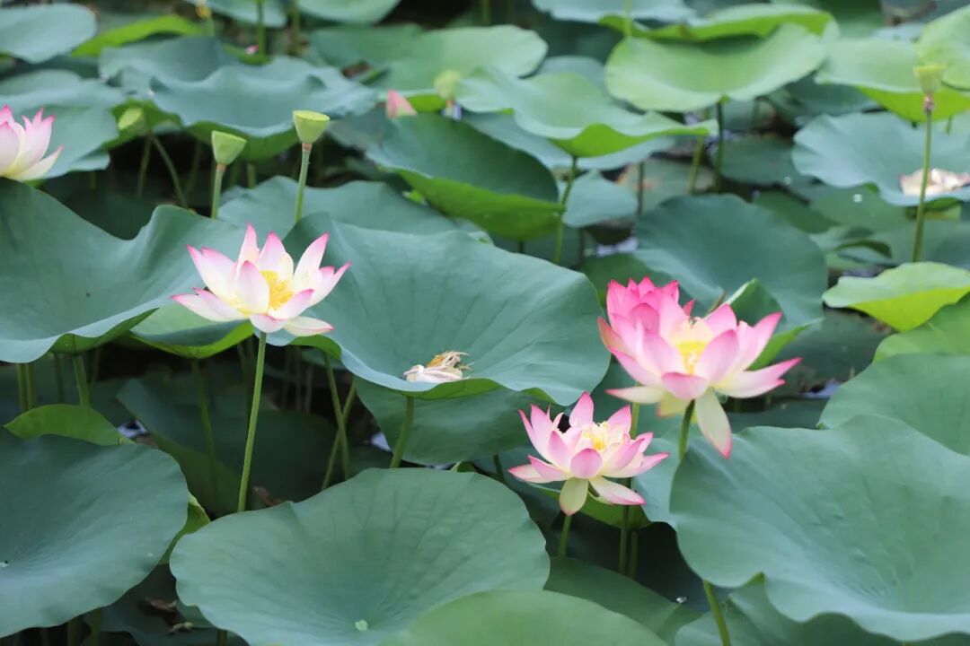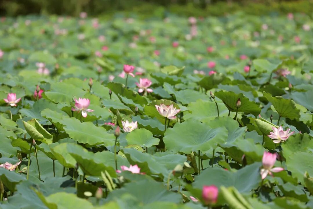 在华阳湖国家湿地公园,这里的荷花亭亭玉立,姿态优雅,朵朵荷花或含苞待放,或已全然盛开,粉白相间,散发出淡淡的、若有似无的清香。