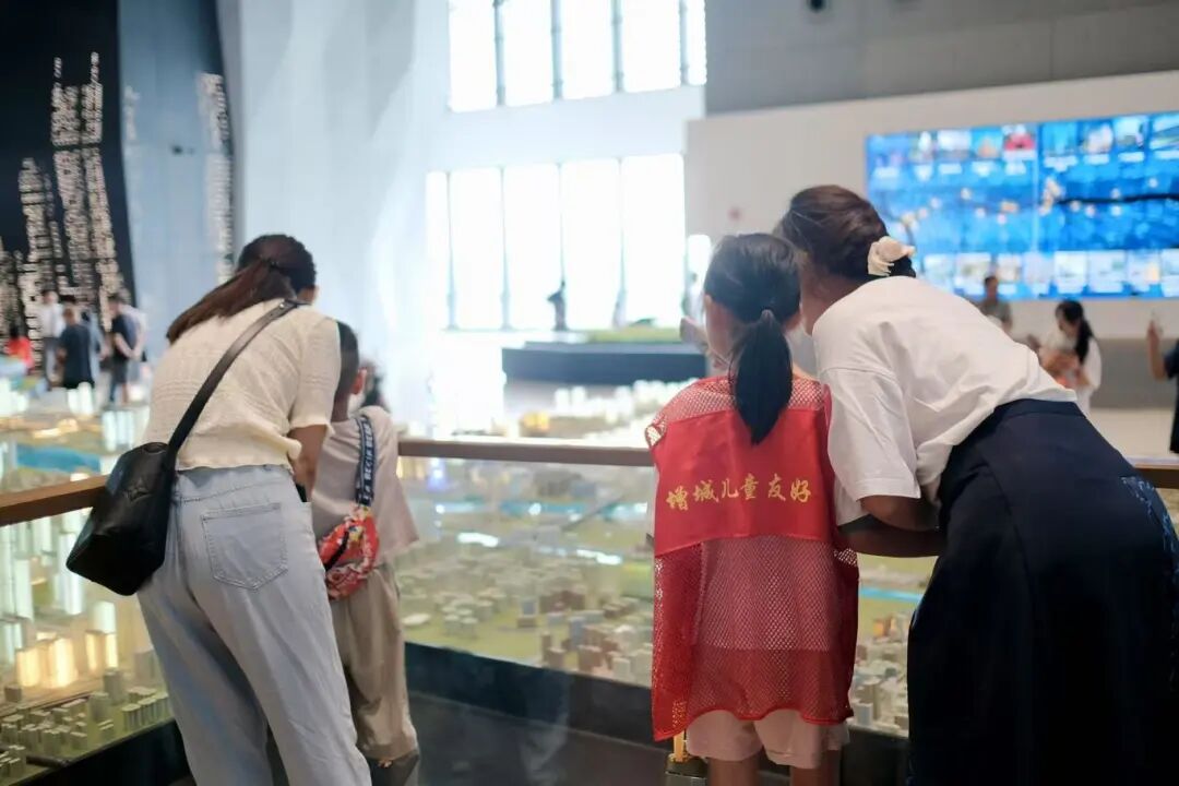 在女规划师的带领下,大家共同参观了广州市城市规划展览中心。在三楼的广州全域沙盘前,孩子们充满好奇,认真倾听城市发展的故事。自由参观时间里,集章打卡成了最受欢迎的活动,孩子们拉着爱心妈妈的手穿梭在展厅,收集特色印章兑换零食礼包,笑声此起彼伏。