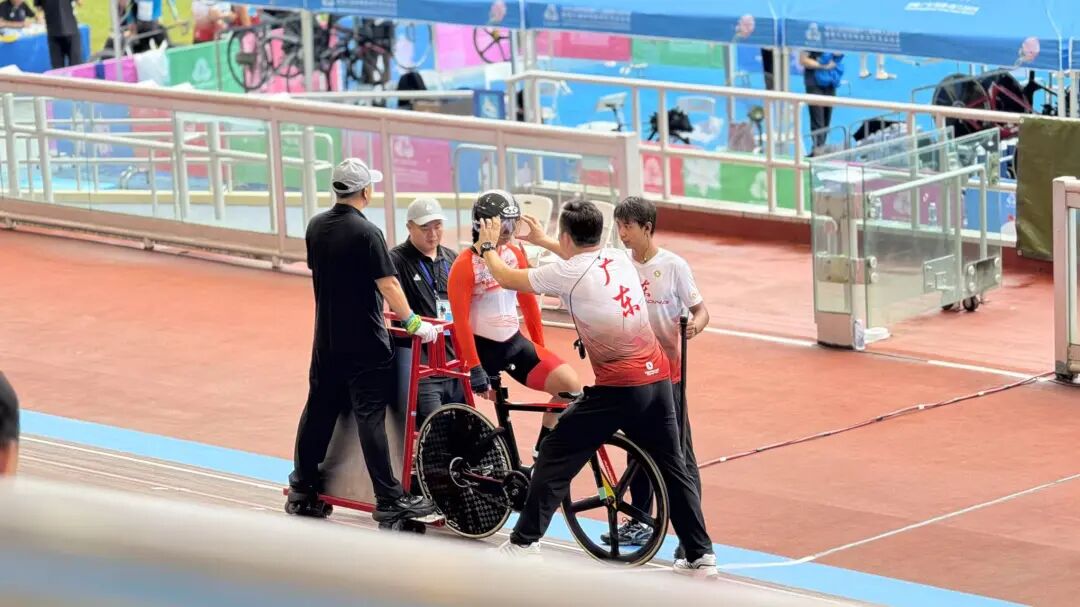开赛首日,云浮市优秀残疾人运动员曾思妮便传来捷报,在场地C2女子3公里个人追逐赛中强势夺冠。尽管她此次的成绩与自己在东京残奥会上创造的世界纪录仅差不到一秒,让现场观赛的孩子们直呼“惋惜”,但这依旧无碍她的光芒绽放。7月2日,曾思妮乘胜追击,在500米个人计时赛中再获第二名,目前已揽获一金一银的优异成绩。