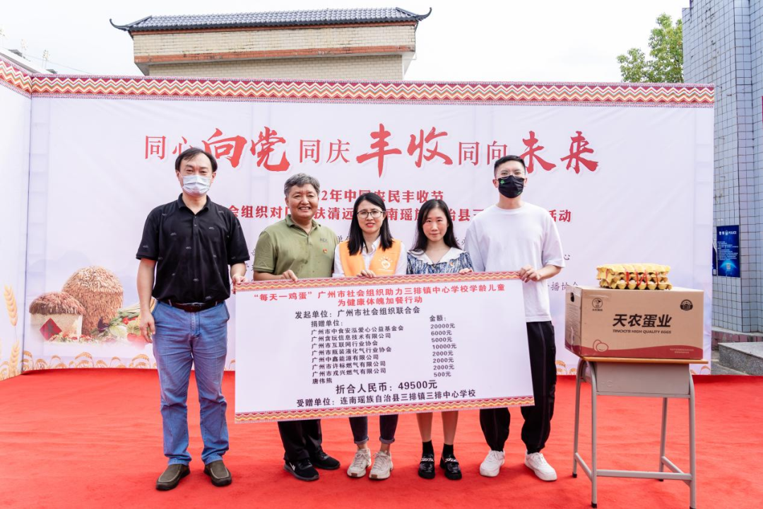 广州社联和关爱中心于2022年在清远市连南瑶族自治县三排镇三排中心学校设立对口帮扶工作站,以站点为帮扶阵地,并启动“每天一鸡蛋”行动。截至目前,“每天一鸡蛋”行动已获得17家广州市社会组织、爱心企业及个人的支持,共筹集善款超17万元,为三排中心学校提供了549.5箱超1.6万斤的鸡蛋。广州社联和关爱中心始终依托平台优势,积极整合多方资源,广泛动员社会各界爱心力量,持续为项目筹集经费支持并引发广泛关注,有效提升学生的营养健康水平,推动广州市社会组织共同参与构建更加完善的儿童保护体系,为乡村振兴贡献力量。