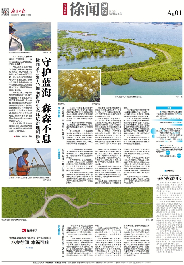 七月,骄阳似火,在新寮镇西山村的岸线上,一道1.8公里长的海堤与葳蕤的红树林并肩矗立。详情>>