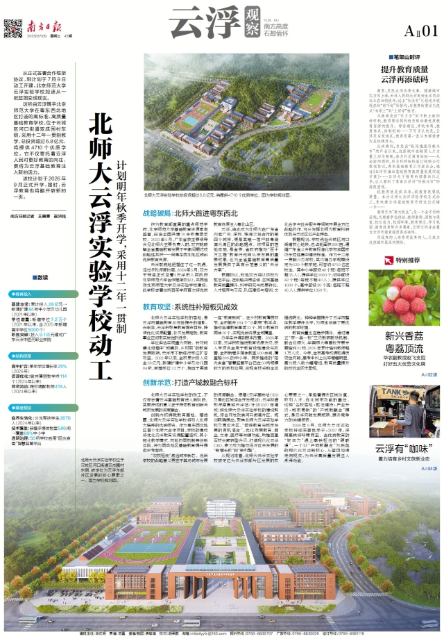 从正式签署合作框架协议,到计划于7月9日动工开建,北京师范大学云浮实验学校加速从一纸蓝图变成现实。详情>>