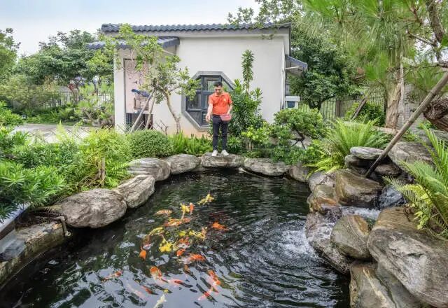 庭院布局上,以“池、园、茶”空间为核心架构,巧妙利用有限空间,打造出层次丰富的景观体系。把原本杂草丛生的院子重新规划,引入假山鱼池水景,开凿荷花池,池边置石凳、设茶室,形成“开门即景、临池品茗”的诗意场景。