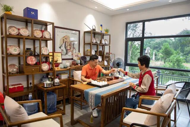 吴连有一家早年在花都城区经营茶叶生意,2021年,经跟家人商量,结合家乡竹洞村的文旅及盆景资源,以城区的茶叶店为窗口,背靠竹洞村,即“前茶叶店,后茶文化院子”的想法,把村里的祖屋翻新,将茶文化和创建美丽庭院结合起来,相得益彰。