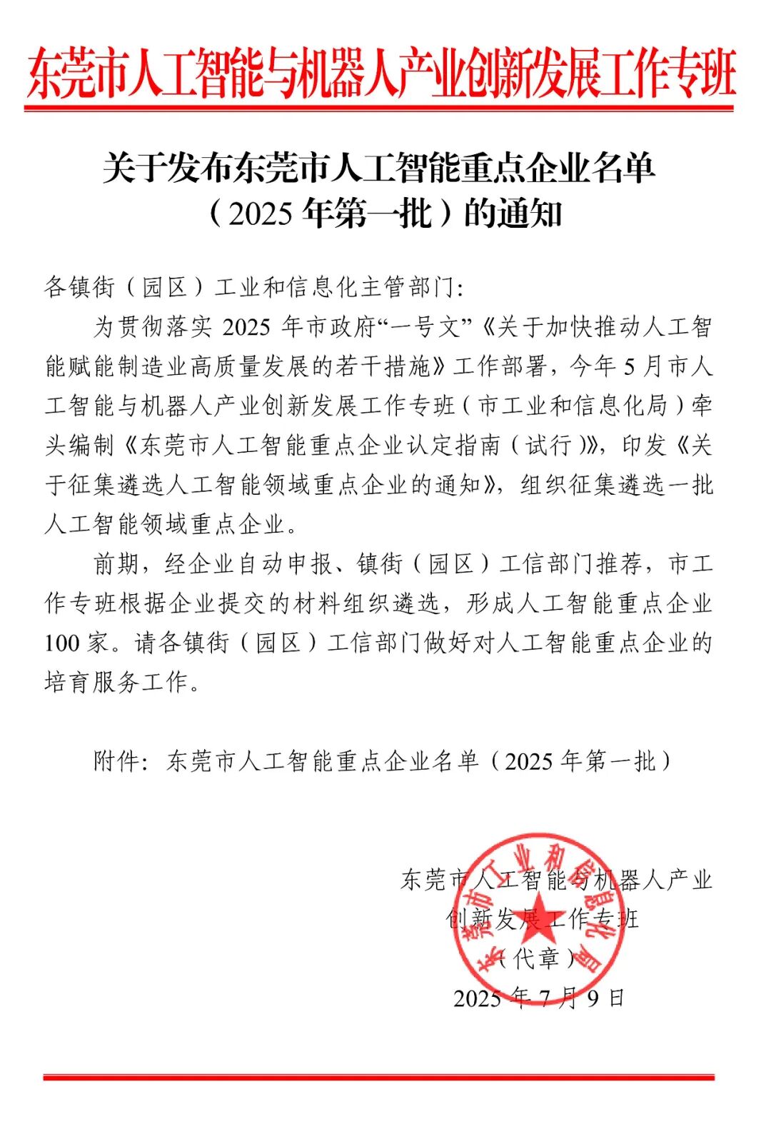 近日,东莞市人工智能与机器人产业创新发展工作专班正式发布了《东莞市人工智能重点企业名单(2025年第一批)》,广东全诚信息科技有限公司与东莞市圈子你我人工智能科技有限公司凭借卓越的技术实力和创新能力,双双成功入选首批100家重点企业名单。