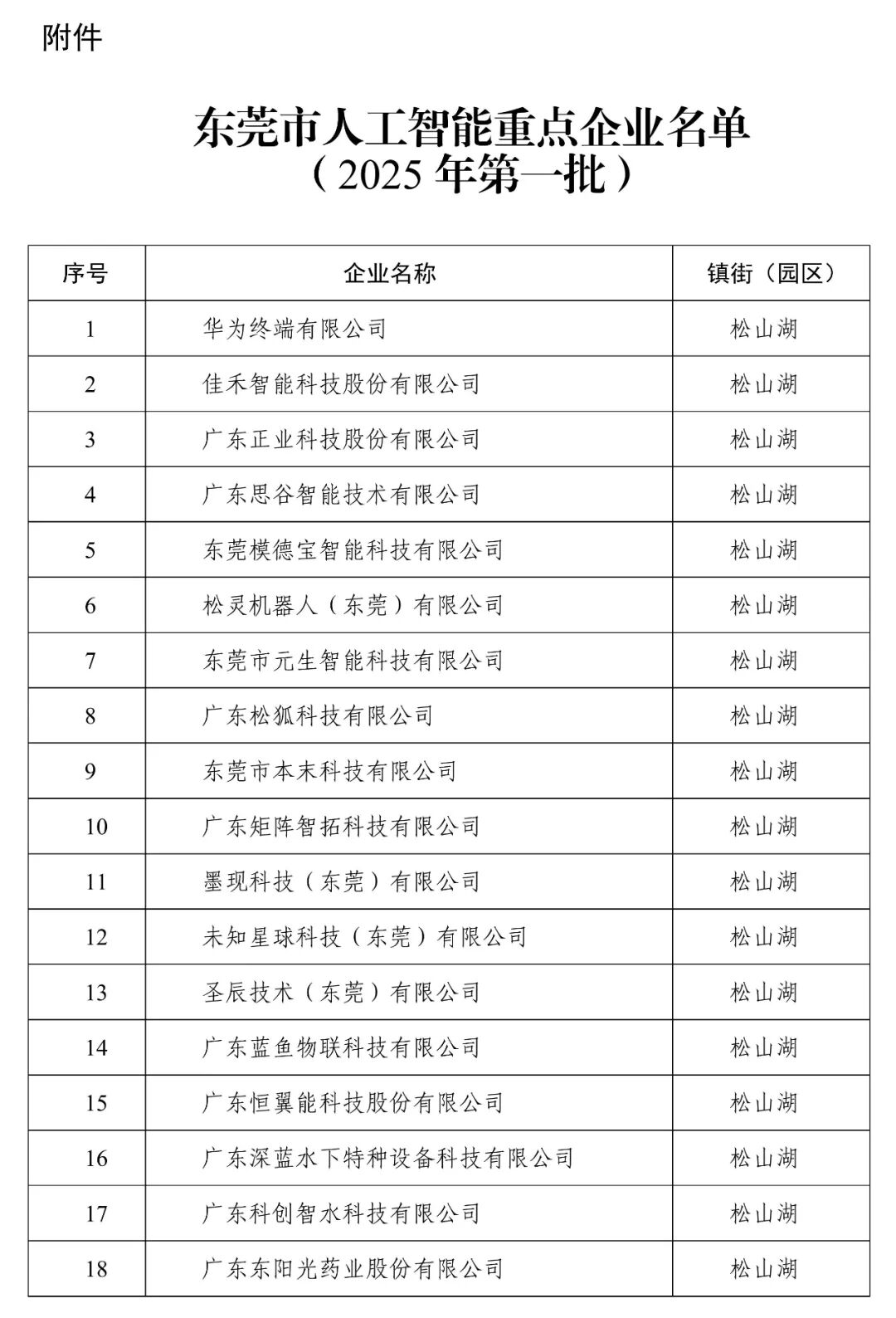 东莞市首批人工智能重点企业