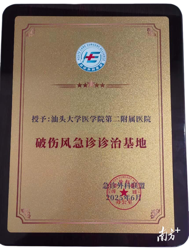 近日,在2025全国急诊外科分会年会上,汕头大学医学院第二附属医院获授“破伤风急诊诊治基地”,成为破伤风防治示范“十百千”项目全国范围内首批18家医院之一,标志着该院破伤风规范化预防处置和综合医疗救治能力已达到国家级标准,并获得业内认可。