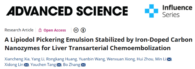 近日,中山大学附属第六医院介入科主任张波主任医师团队在Advanced Science发表了题为A Lipiodol Pickering Emulsion Stabilized by Iron-Doped Carbon Nanozymes for Liver Transarterial Chemoembolization的研究论文(点击文末阅读原文查看)。团队成功开发出一种新型的碘化油皮克林乳液(ICN-LPE),该乳液结合了传统化疗与化学动力疗法,有望提高肝癌患者的治疗效果。