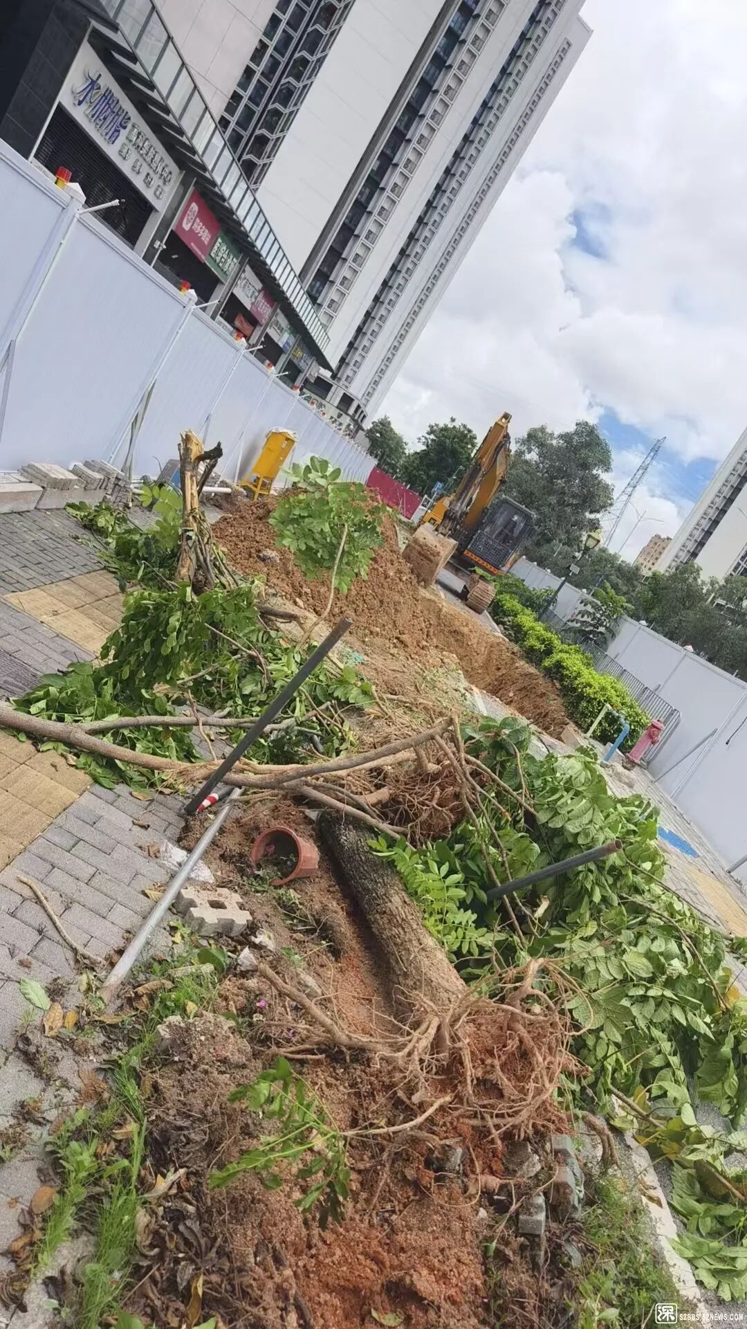 沿街树木因施工被砍伐。图源:发帖网友