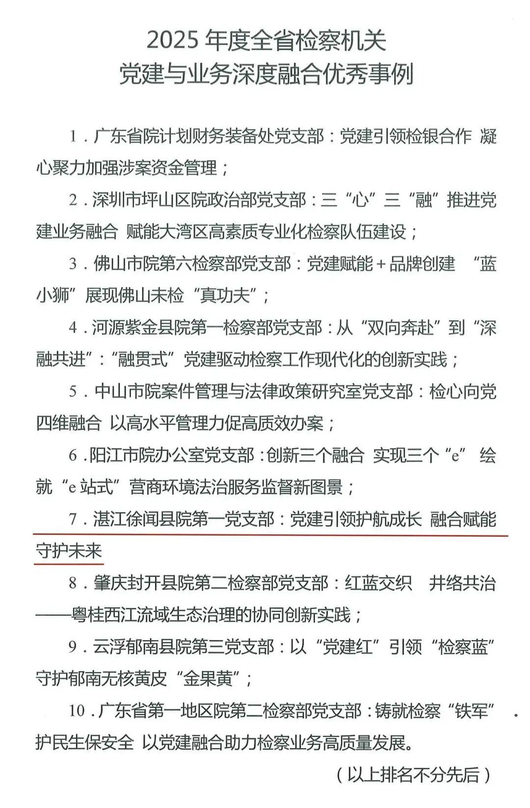 近日,广东省人民检察院通报了“2025年度全省检察机关党建与业务深度融合典型事例”评选结果,徐闻县检察院第一党支部《党建引领护航成长 融合赋能守护未来》获评2025年度全省检察机关党建与业务深度融合十大优秀事例,系湛江市检察机关唯一入选事例。