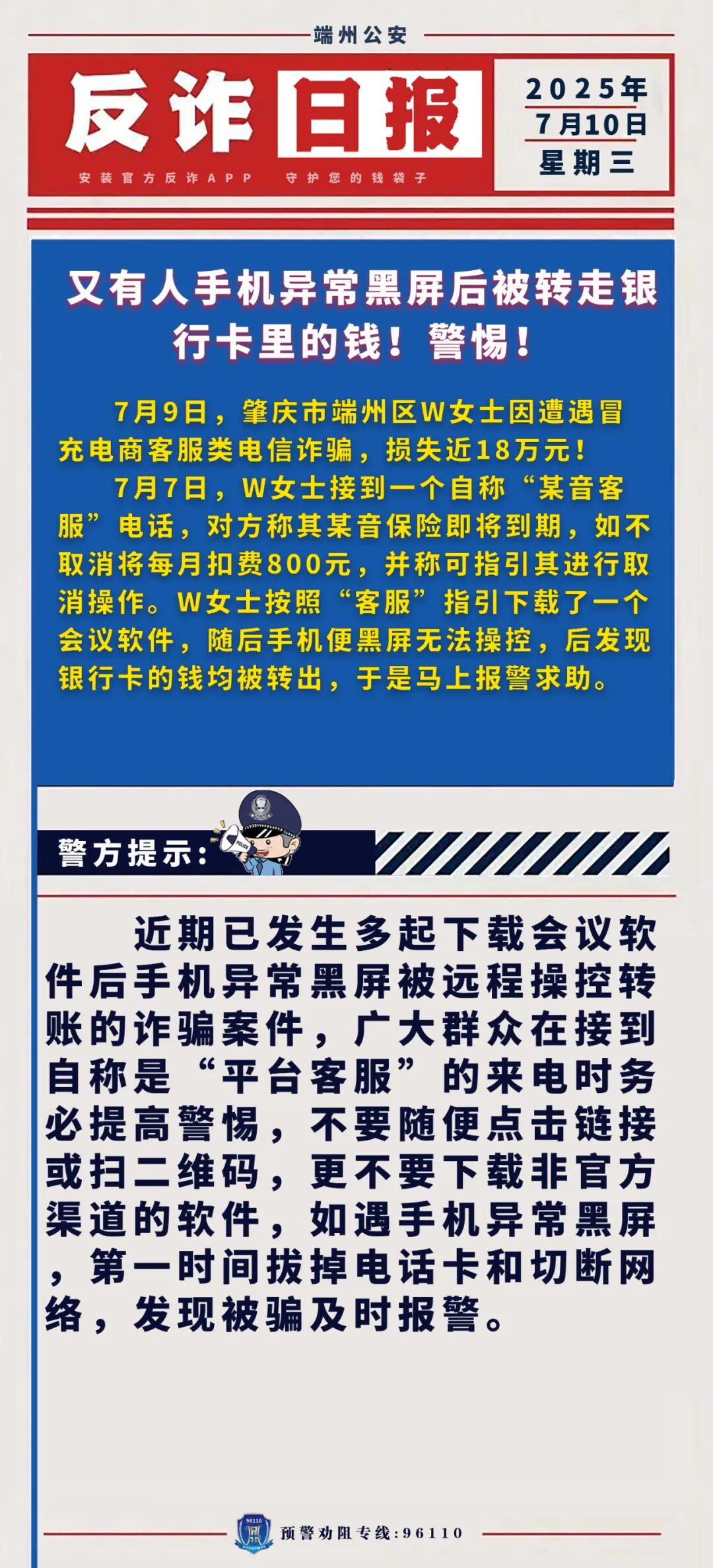 【端州反诈警讯】又有人手机异常黑屏后被转走银行卡里的钱!警惕!