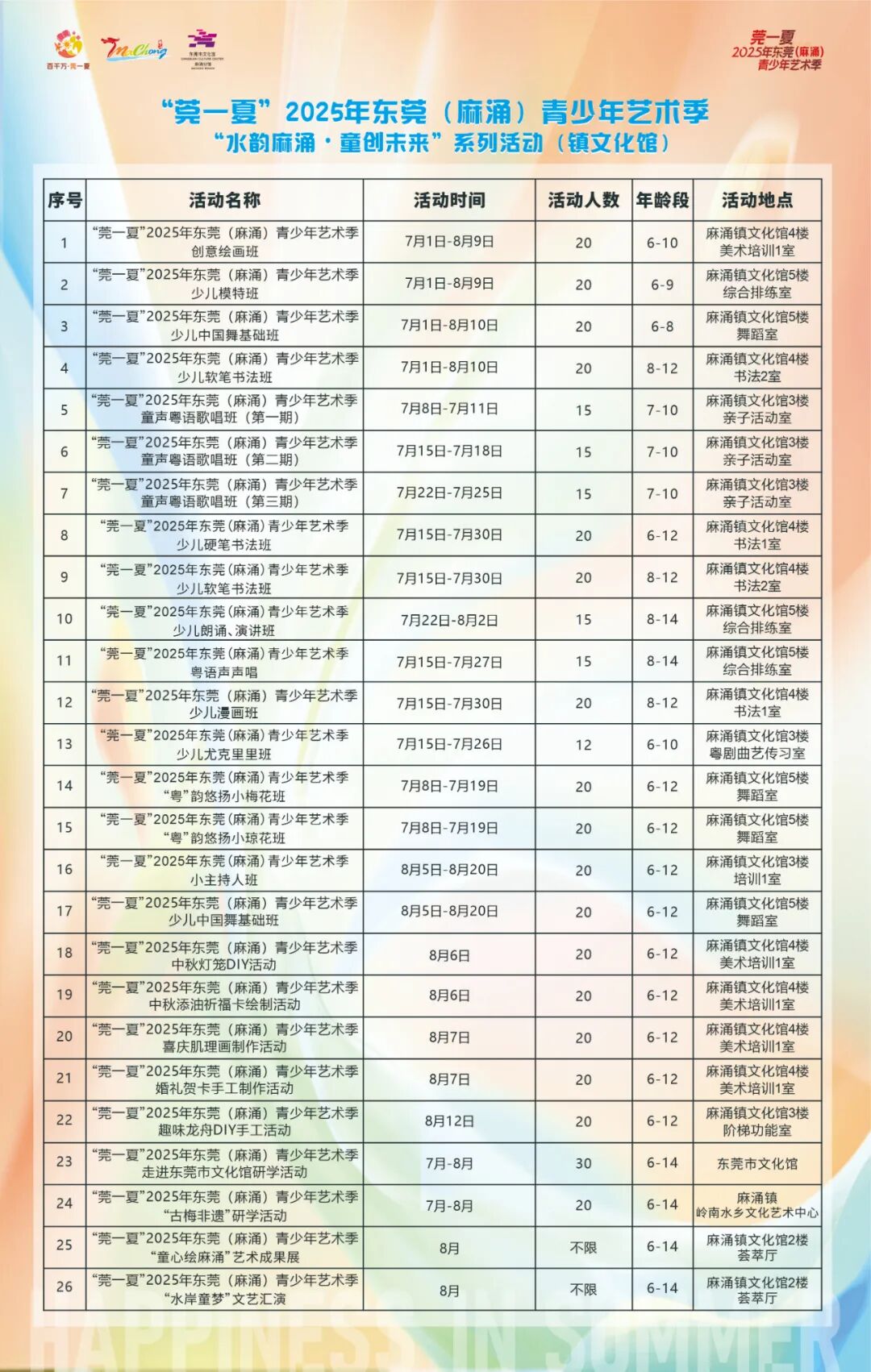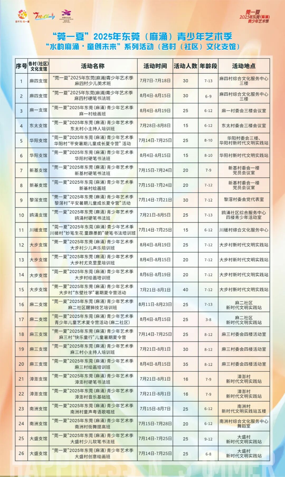 近日,“莞一夏”2025年东莞(麻涌)青少年艺术季——"水韵麻涌・童创未来"系列活动正式开启。本次活动由文化部门联动村(社区)、社会力量等多方资源,融合水乡、粤曲、龙舟、香蕉等本土文化IP,让青少年儿童在文化学习与实践中度过一个充满意义的暑假。