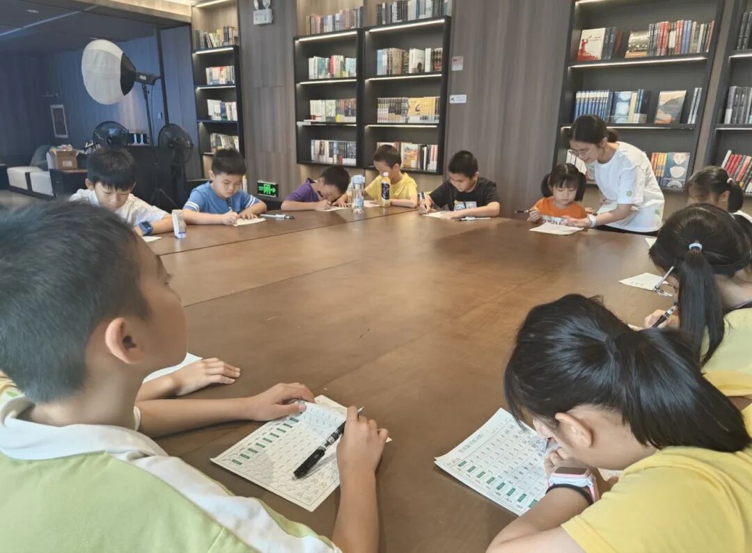在泊·文学书店二楼,学生们端坐低头认真临摹练习书法。手工课上,老师带领着学生用花瓣、饰品和彩绘装点制作扇子。各种趣味课程,不仅让学生们收获快乐,也学到了实用知识。