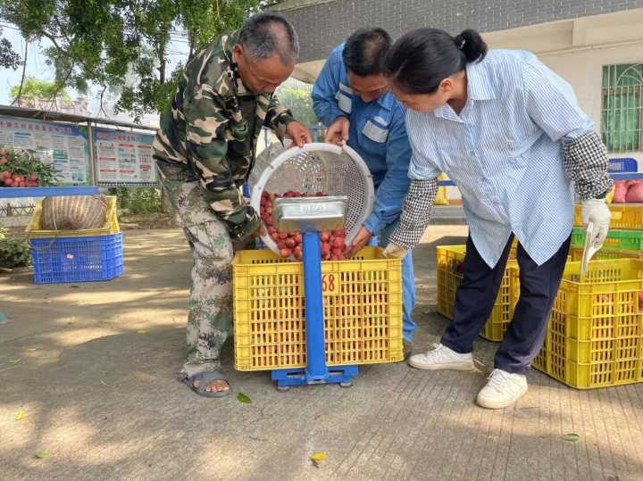 与此同时,为方便荔农销售、提高收购效率,杨村村设立了固定收购点,方便伍塘村、棠下村等周边村庄的荔农就近销售。杨村村村委会还组织专人对荔枝进行质量把关和分级筛选,确保符合企业原料标准后集中转运,既为荔农提供便利,也保障了收购的有序、高效开展。