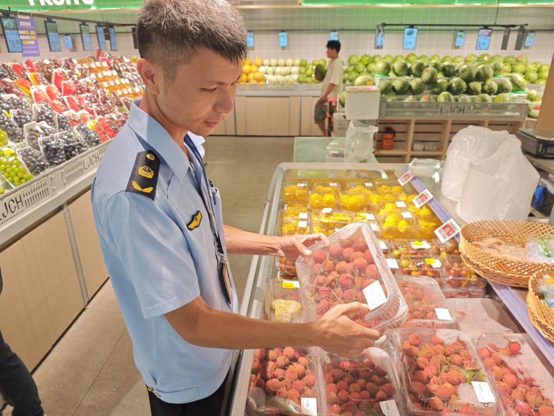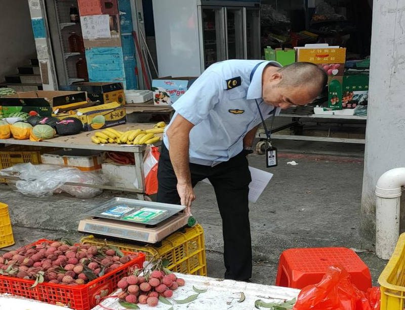 近日,增城区市场监管局开展水果称重计量器具专项检查行动,共检查132家销售荔枝等应季水果店铺,督促经营者规范使用电子计价秤。