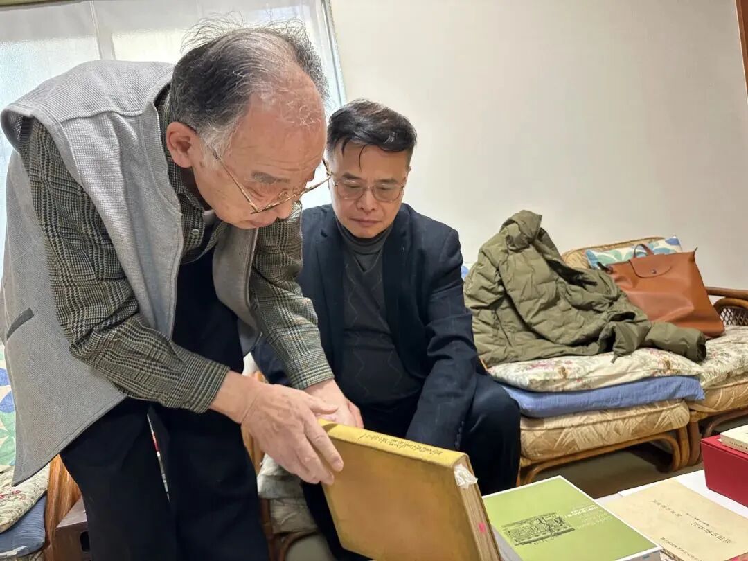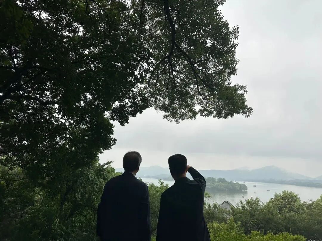 ▴与西泠印社名誉副社长高木圣雨先生上孤山在西泠印社题襟馆
