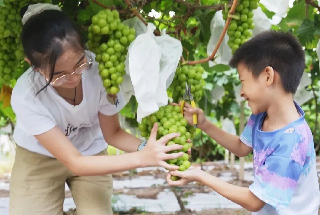 “听说这里的葡萄品质好,今天和妈妈特地来体验摘葡萄,感觉这里的葡萄又大又甜,尤其是黄金香印闻着有花香吃起来也特别脆。”正在采摘葡萄的游客唐可瑶开心地说。