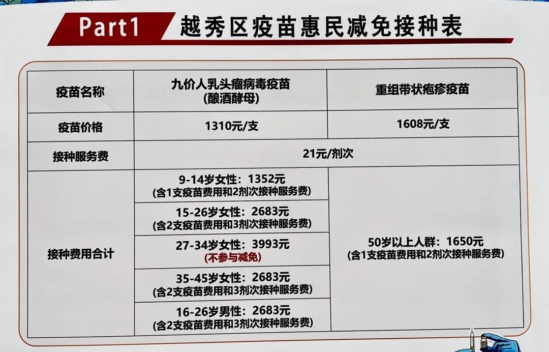 双价HPV疫苗:第一剂于2025年7月5日至2025年12月31日在海珠区接种门诊接种,且在2026年7月31日前完成后续剂次接种,方可享受相应剂次费用减免。
