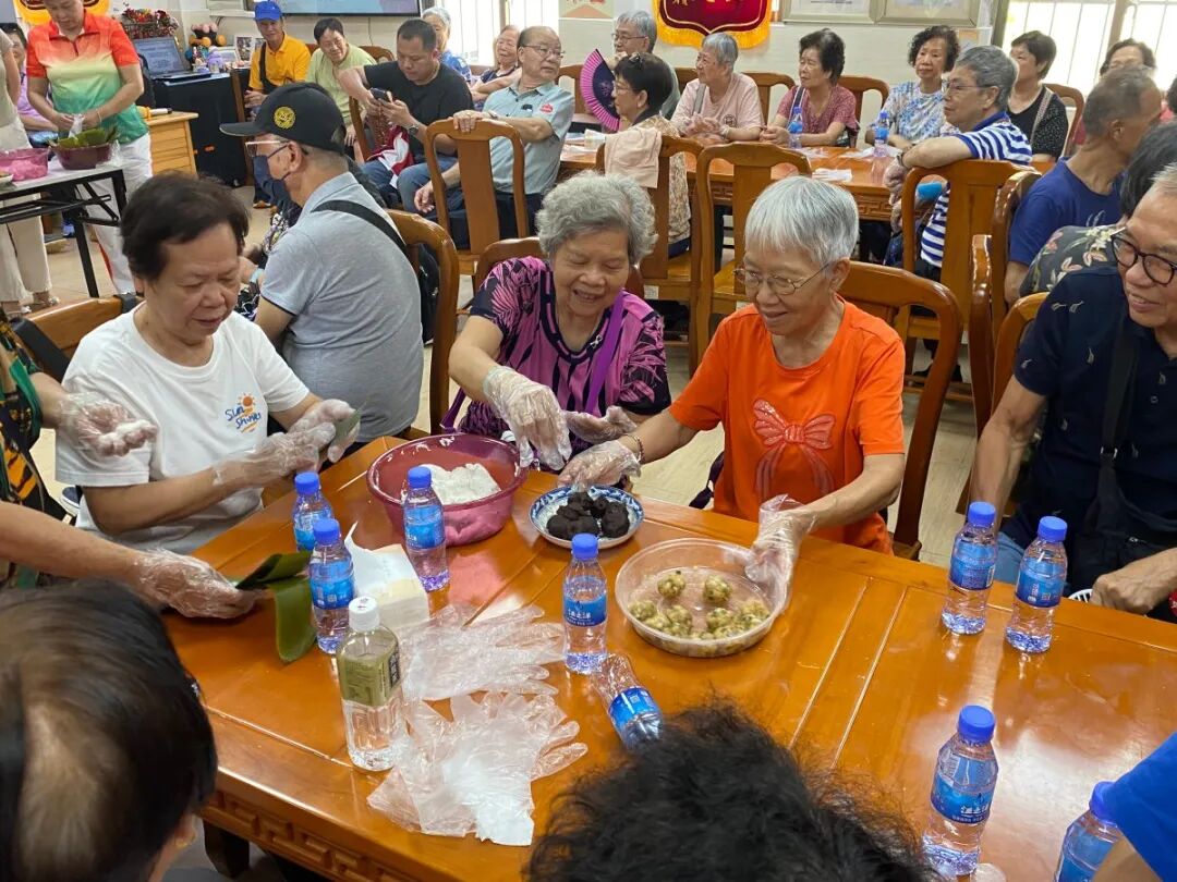 7月13日,51位香港街坊专程来唐家古镇“拜师学艺”,跟着珠海市非遗传承人梁细容学包茶果。