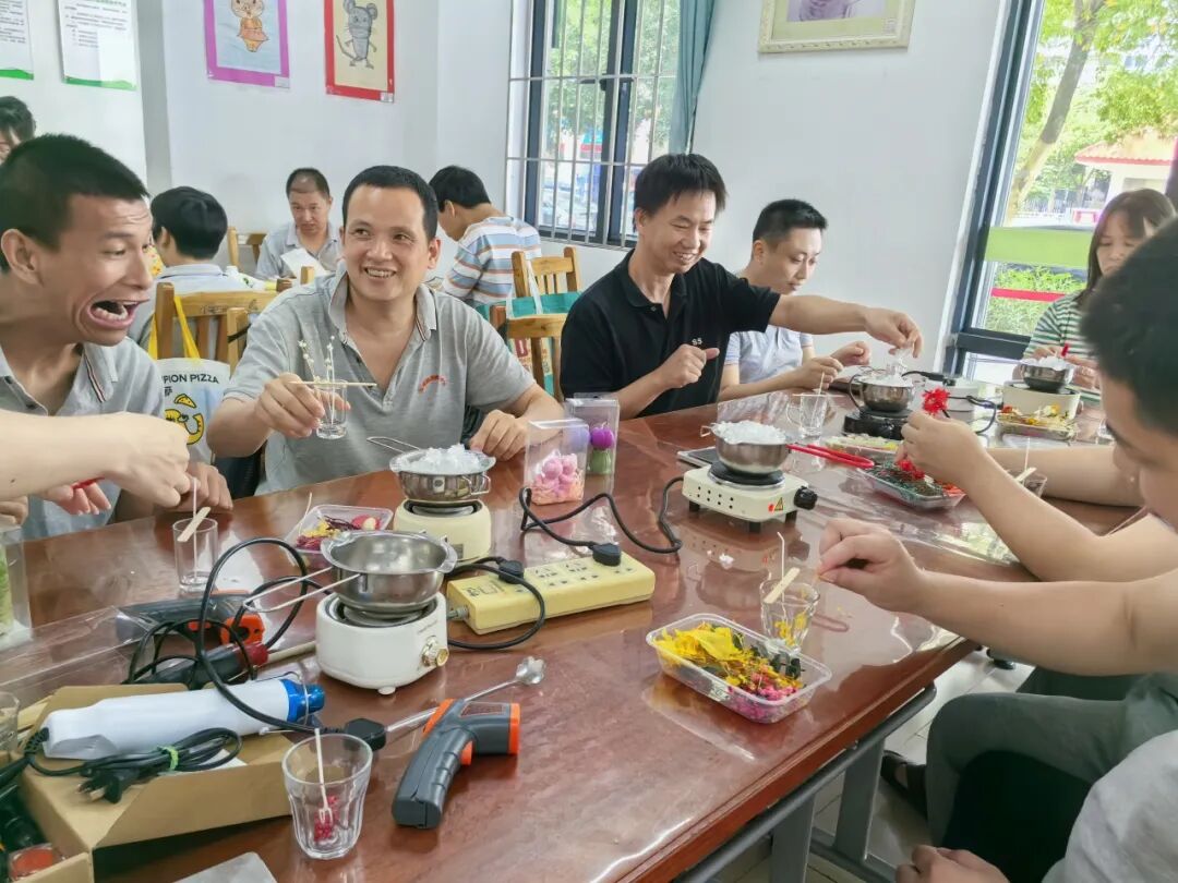 在本次活动中,我们精心挑选了两种极具代表性的非遗项目,分别是来自韩国的香薰蜡烛制作以及土耳其的马赛克杯垫制作。秉持着安全第一且因材施教的原则,我们依据学员的动手能力与安全因素,将他们分为两组。考虑到融蜡环节需借助电炉加热至高温,存在一定风险,我们特意挑选了动手与理解能力相对较好的学员参与。这些学员在培训老师耐心细致的指导下,逐渐掌握了选材、融蜡、倒模等一系列关键步骤。当他们举起亲手制作的作品时,眼神中满是成就感与自豪感。