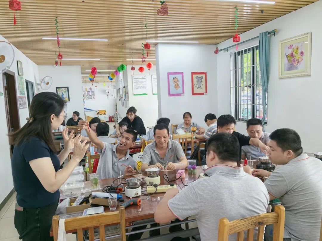 为深入推进第十二届广州市社会组织公益创投项目,广州市花都区星语儿童素质训练中心暨星语建粤工作室,实行非遗工艺品培训送教上门活动。此场活动在花都区花城工疗站展开,工疗站的站长、老师以及学员们对我们此次活动都表现出极大的兴趣和欢迎。活动主题聚焦于大龄心智障碍者各国非遗工艺品制作宣讲培训及制作体验,旨在为这一特殊群体通过一系列的非遗制作体验活动,助力他们挖掘自身潜能,找到可延伸的就业培训方向,达到实现自我价值的目的。