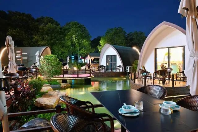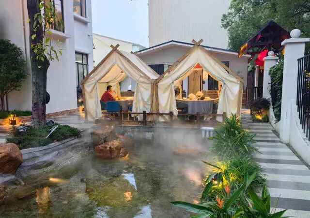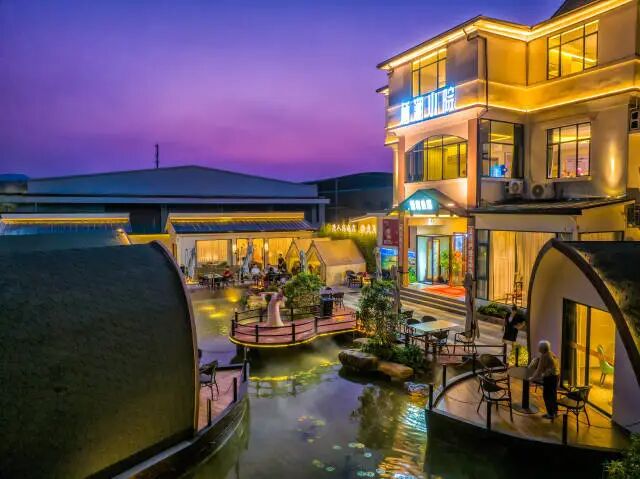 小院环境独具特色,三个造型别致的“船房”包间是其亮点。食客在船房中用餐,能感受到独特的氛围。庭院中心有时还举办文艺表演,丰富用餐体验。