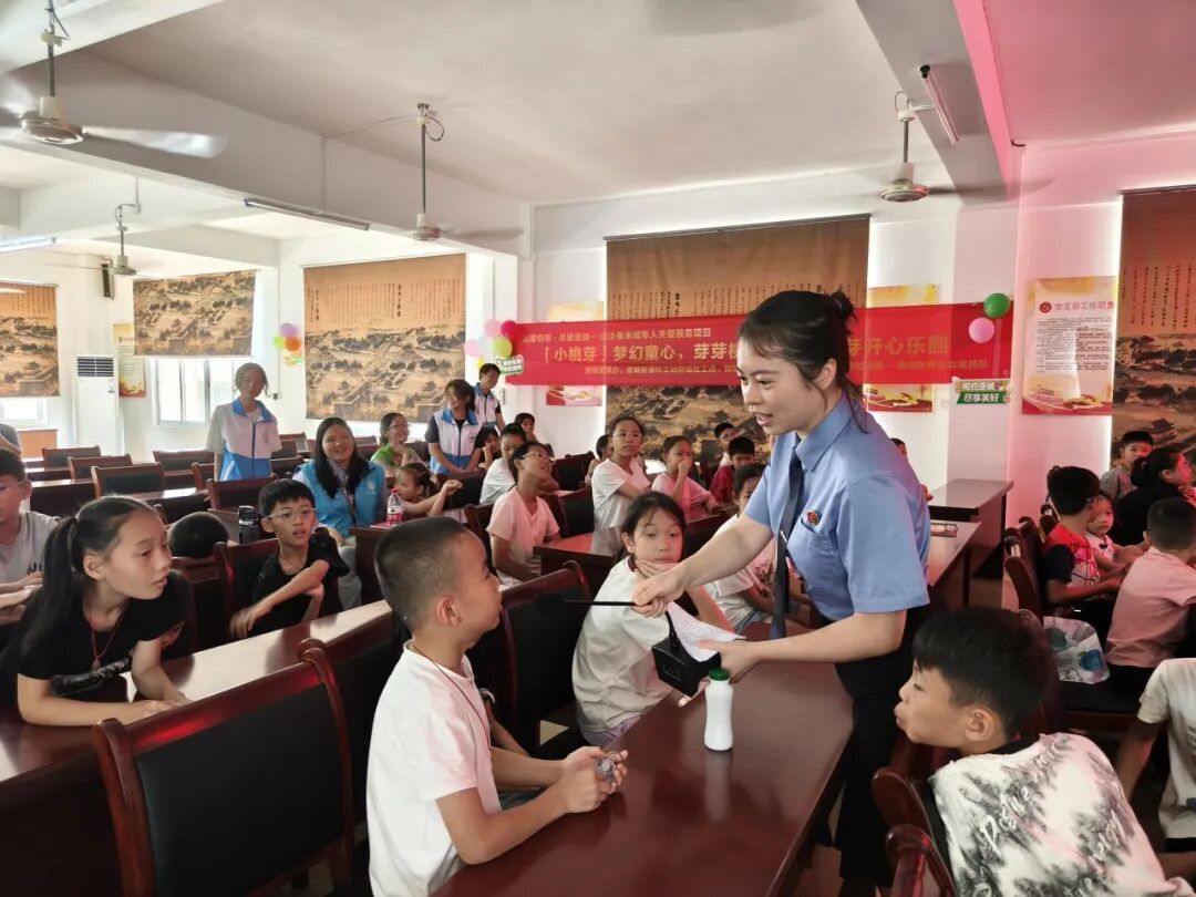 蝉鸣声声,暑期已至。为筑牢未成年人暑期安全防线,近日,遂城街道社工站附城点联合湛江幼儿师范专科学校“悦劳”大学生志愿者实践队,在遂城街道附城村委会开展了为期7天的暑期专项服务活动。作为“大党委”机制的积极践行者,遂溪县检察院主动“接单”,将精心准备的“法治专列”开进社区,为50余名小朋友带来了暑期安全“第一课”,用创新普法点亮孩子们的“安全假期”。