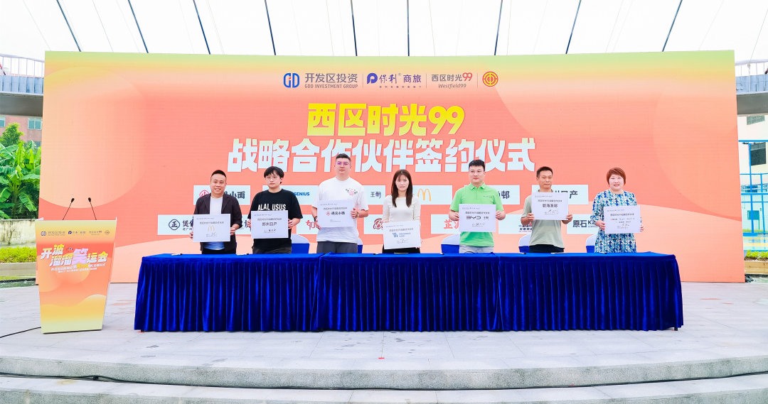 活动现场,还举行了西区红酒文化街招商签约仪式,碧海渔邨、麦当劳、遇见小面、比亚迪等13家优质商户与开投西区公司签订战略合作协议,为西区商业发展注入新活力。