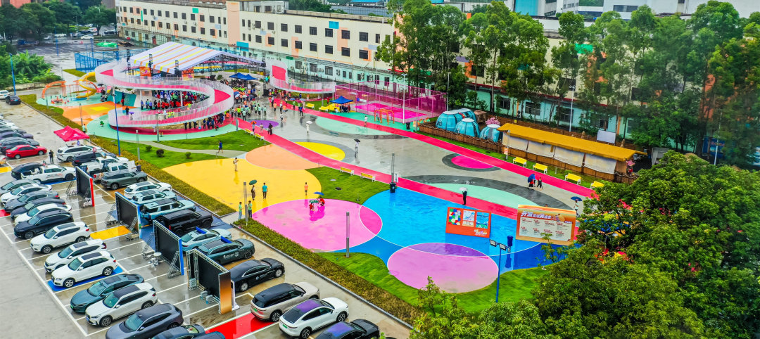 西区空间焕新,打造高品质公共空间。围绕打造高品质公共空间,贯彻实用性与观赏性的设计理念,精耕细作,历时一年,原本老旧的停车场被改造成为一个集运动休闲、文化展演、亲子互动、商业服务于一体的综合性公园——酒窝PARK体育公园。