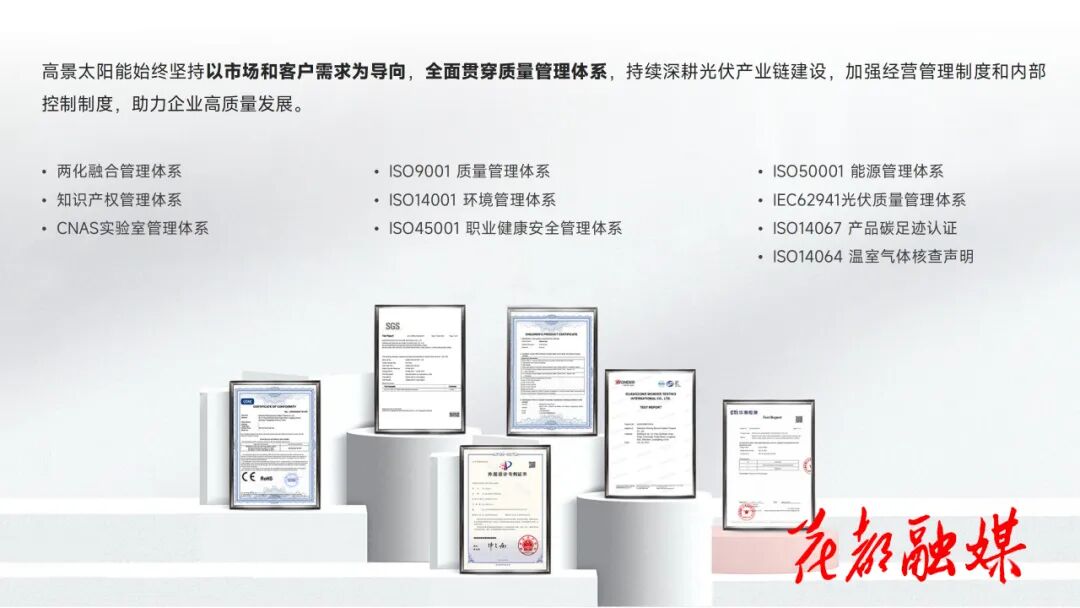 面对国际光伏市场的激烈竞争,广州高景太阳能利用BC组件等产品切入国外市场,避免同质化竞争;已通过TÜV莱茵、UL、IEC等国际认证。