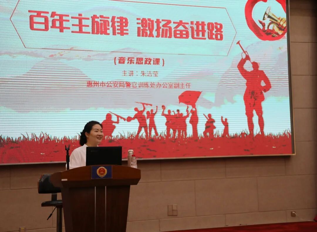 为庆祝中国共产党成立104周年,7月16日,惠城区检察院邀请惠州市公安局警官训练处办公室副主任朱洁莹,为全体干警及退休干部带来了一堂“声”动思政课,用音乐之美点亮思政之光。
