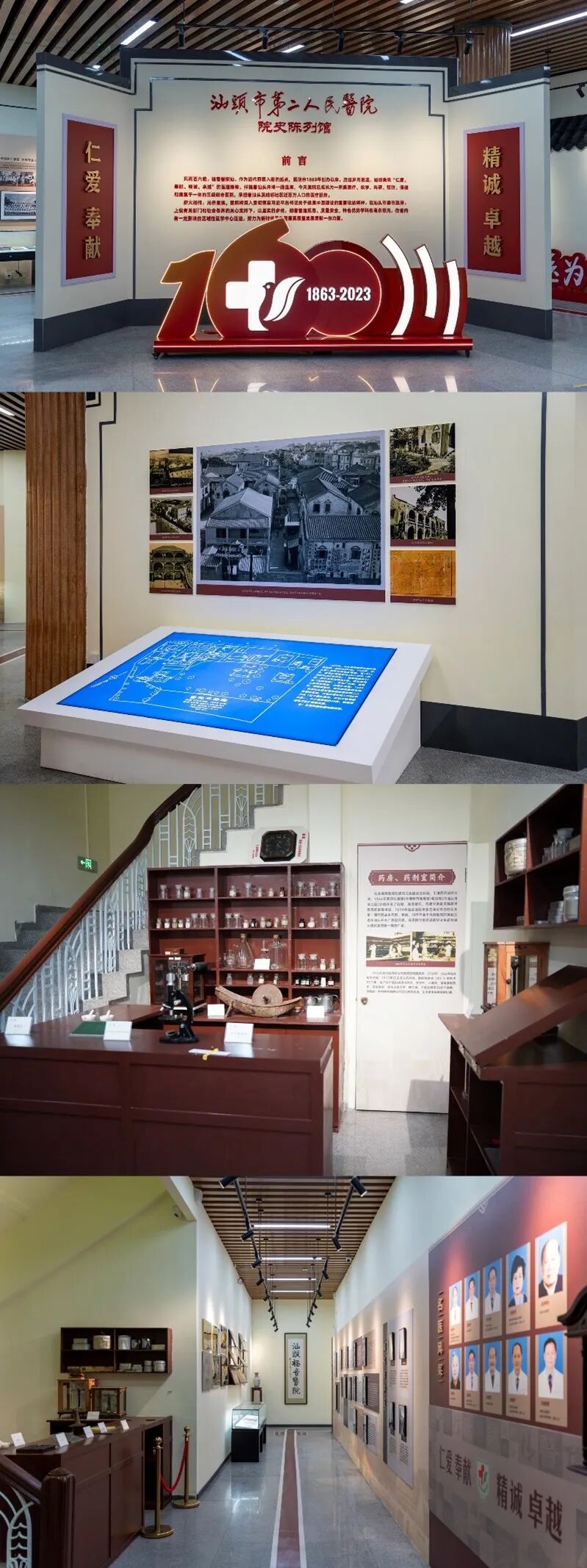特别值得一提的是2023年建成的"汕头市第二人民医院院史陈列馆", 该馆以医院160年院史为核心载体,在外马路71号这栋始建于1931年的市级重点文物保护单位中进行了修复建设。展区面积625平方米,设有医院发展历程、学科建设成果、医疗技术引领、珍贵文物展示、党建与社会责任等展区,系统展示中国近代“西医入潮”的医疗发展史(1863年至今),通过图文并茂、实物展示的方式,生动再现医院从建院初期到如今的发展历程与成就。展览馆旨在传承与发扬医院的优秀历史文化,激发全社会对医学文化的关注与热爱,让更多人领略医学的独特魅力与价值。