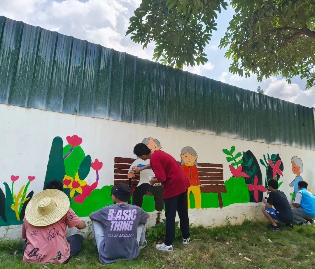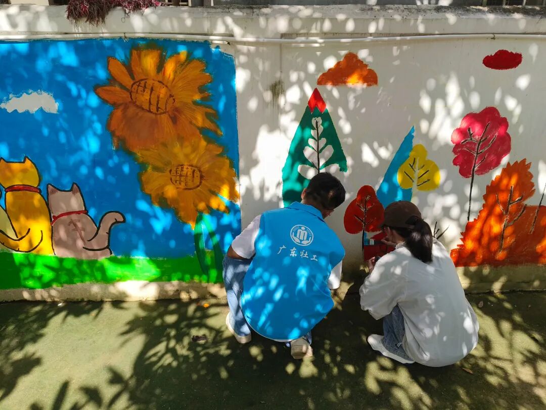 近日,高村镇社工站、团镇委、镇妇联联合广东青年大学生“百千万工程”突击队(华南理工大学自动化乡村振兴突击队)到高村镇敬老院开展“美丽庭院+志愿服务”墙绘活动,用青春之笔给敬老院增添色彩。