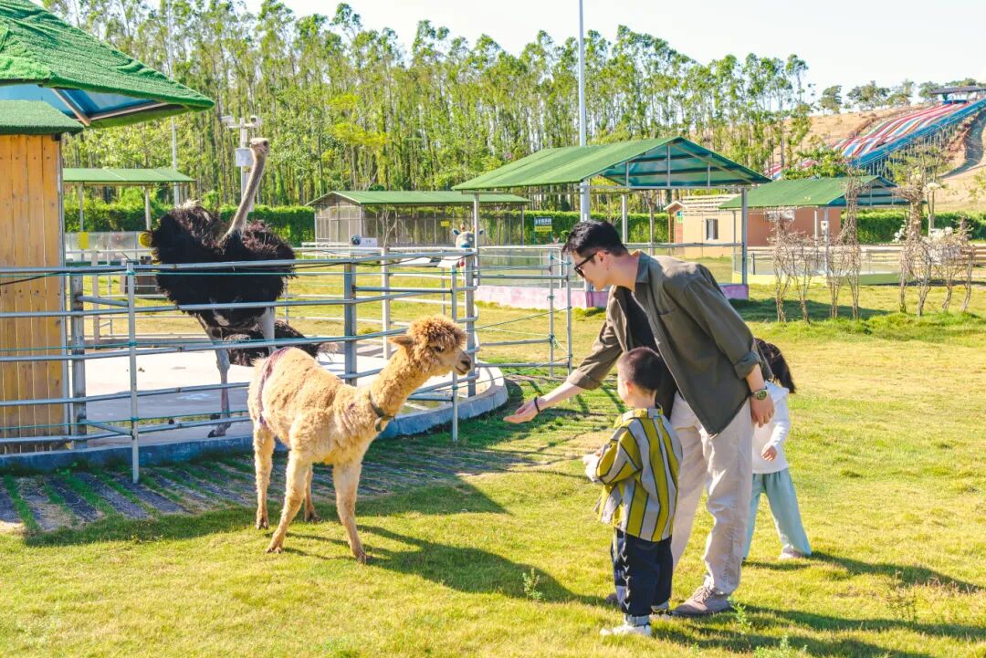 园内设有萌宠乐园,孩子们可以与羊驼、鸵鸟、孔雀、兔子、山羊、龙猫等可爱小动物亲密互动,体验喂养乐趣,培养对生命的关爱与尊重。想象一下宝贝们看到羊驼时惊喜的表情,一定会成为难忘的亲子记忆!