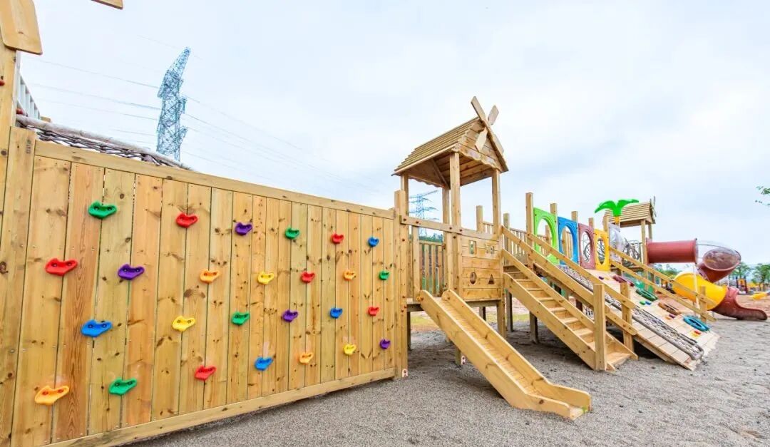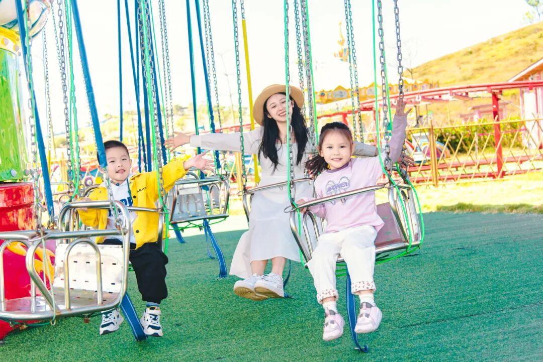 园区内还有大片花海、玫瑰园和童趣园,设置了滑梯、秋千、熊猫蹦蹦云、粉色沙滩等游乐设施,让孩子们尽情释放天性。