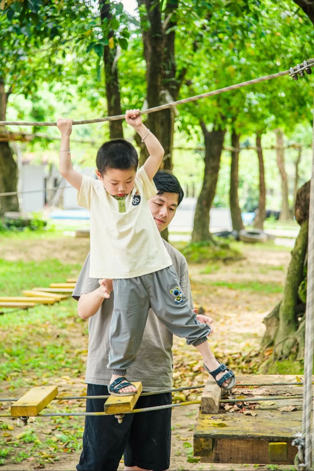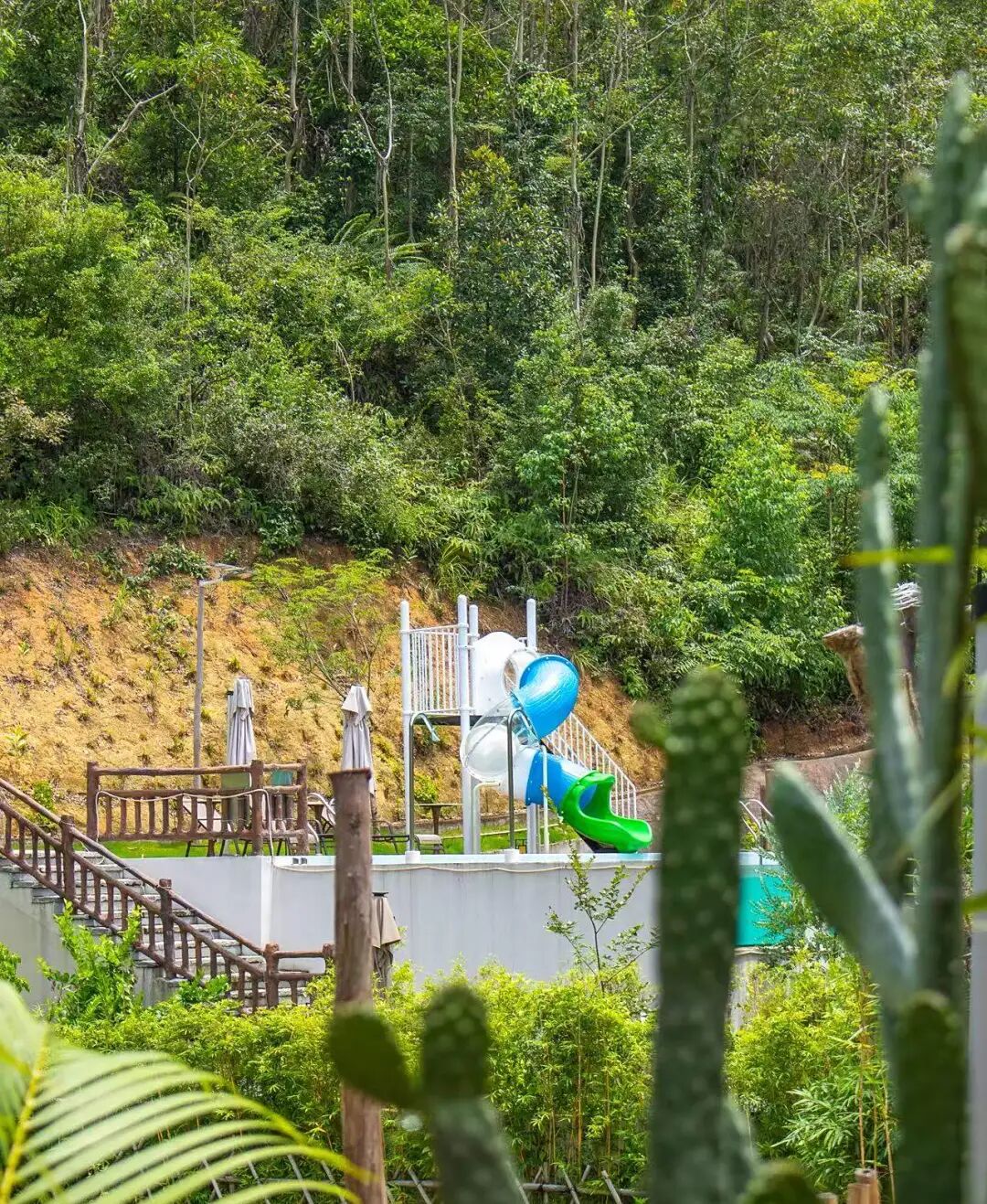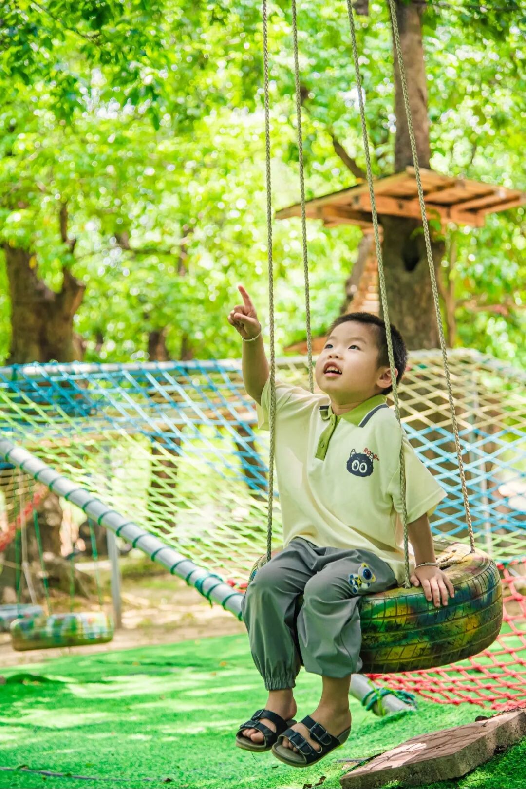 古树庄园里绿荫环绕花草点缀,非常清凉舒适,里面游乐设施也非常多,如蹦蹦云、吭爹车、丛林探险、网红旋转秋千、喊泉、爬网、沙池、多人秋千、水上拓展、水上乐园……