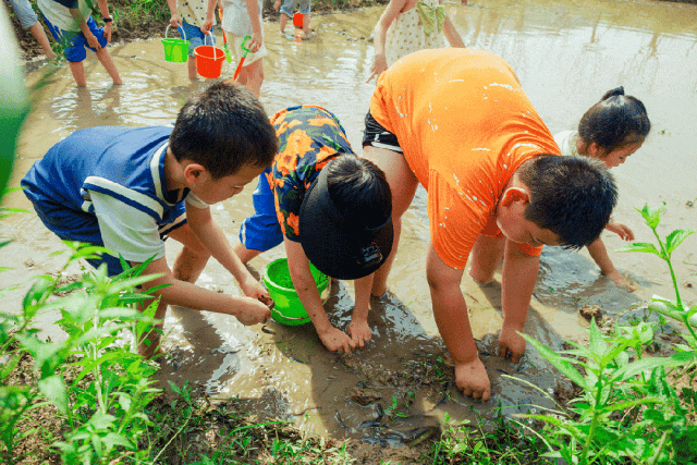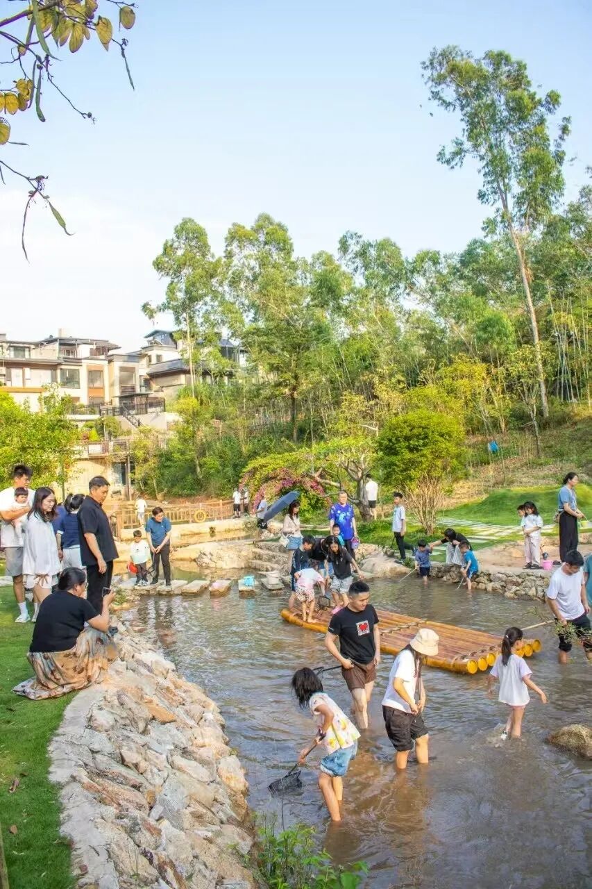 脱掉鞋子踏入小溪,这里秒变孩子们的“野生乐园”,溪水清得能看见鹅卵石上的花纹,成群的小鱼小虾藏在石头缝里,一网兜下去,保准娃尖叫,“妈妈快看!我捞到鱼啦!”