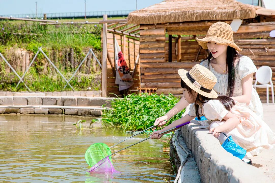 营地内游玩项目真不少,有山有水有草地,大人们可以垂钓,孩子们可以捞鱼摸虾。