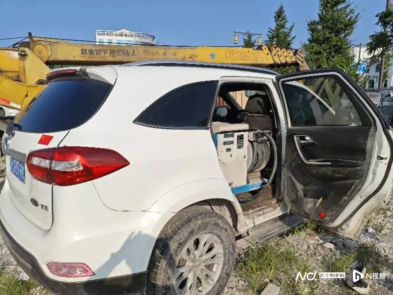 被查扣的“黑加油车”。这辆与普通私家车外观无异的SUV,打开车门,俨然是个小型加油站,后排座椅被拆除,加装了计价器、加油枪、储油胶罐。